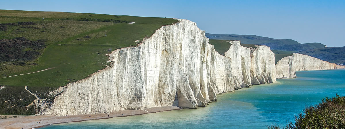 The hills of the Seven Sisters end in a pebbly beach where